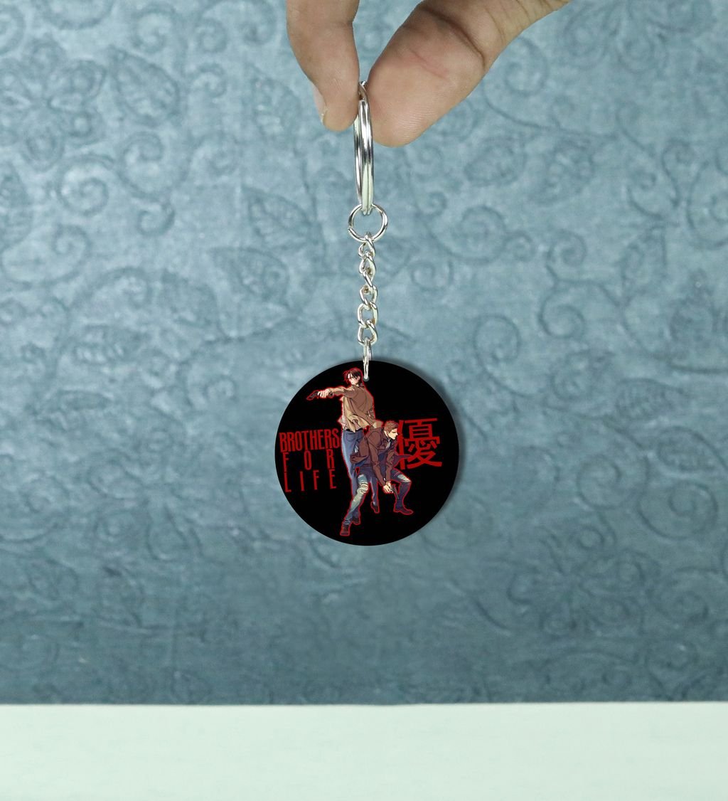 Anime Style Brother Bond In Action Printed Round Keychain Pack of 2