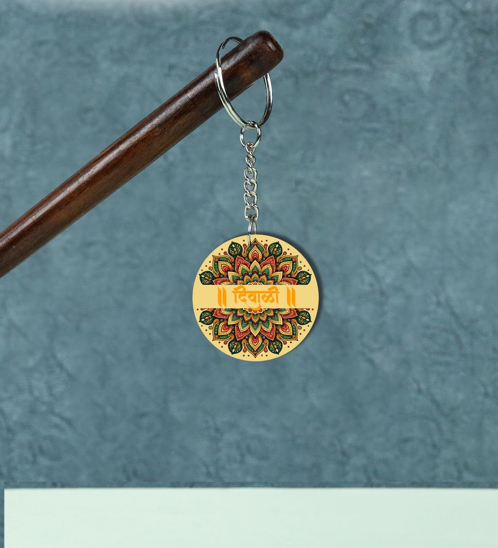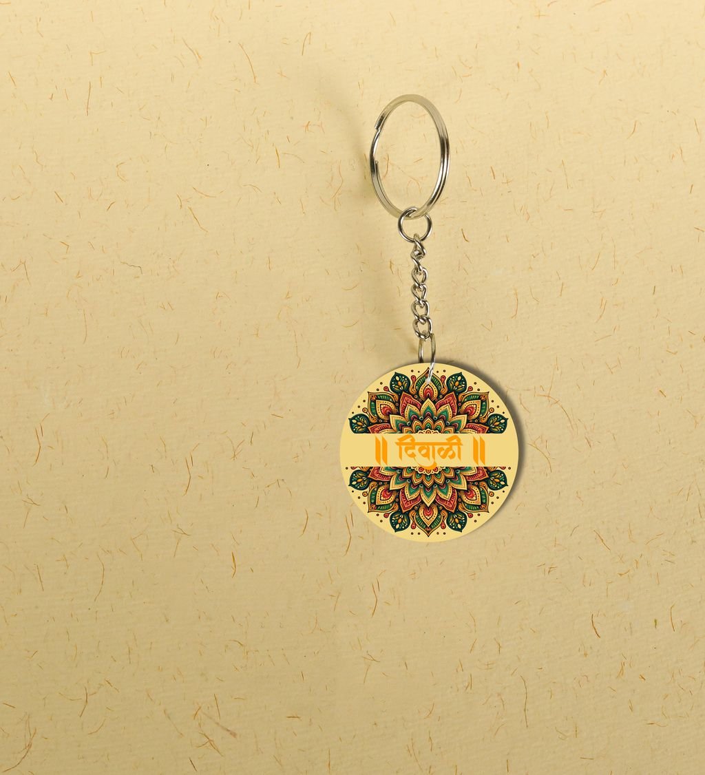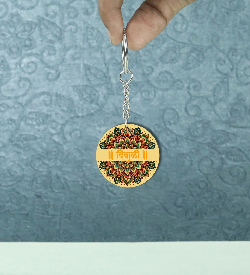 Auspicious Festival Night Diwali Printed Round Keychain Pack of 2