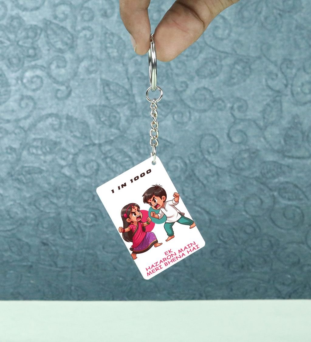Celebrate the pure bond of Raksha Bandhan with our Bandhan of Blessings printed keychain. Designed to capture the love, care, and protection shared between siblings, this keychain makes a meaningful keepsake and a thoughtful gift. Lightweight, durable, and stylish, it