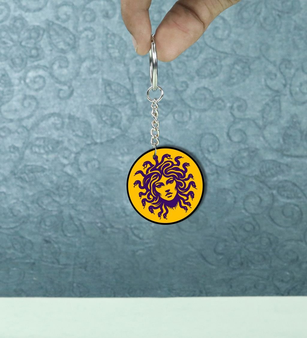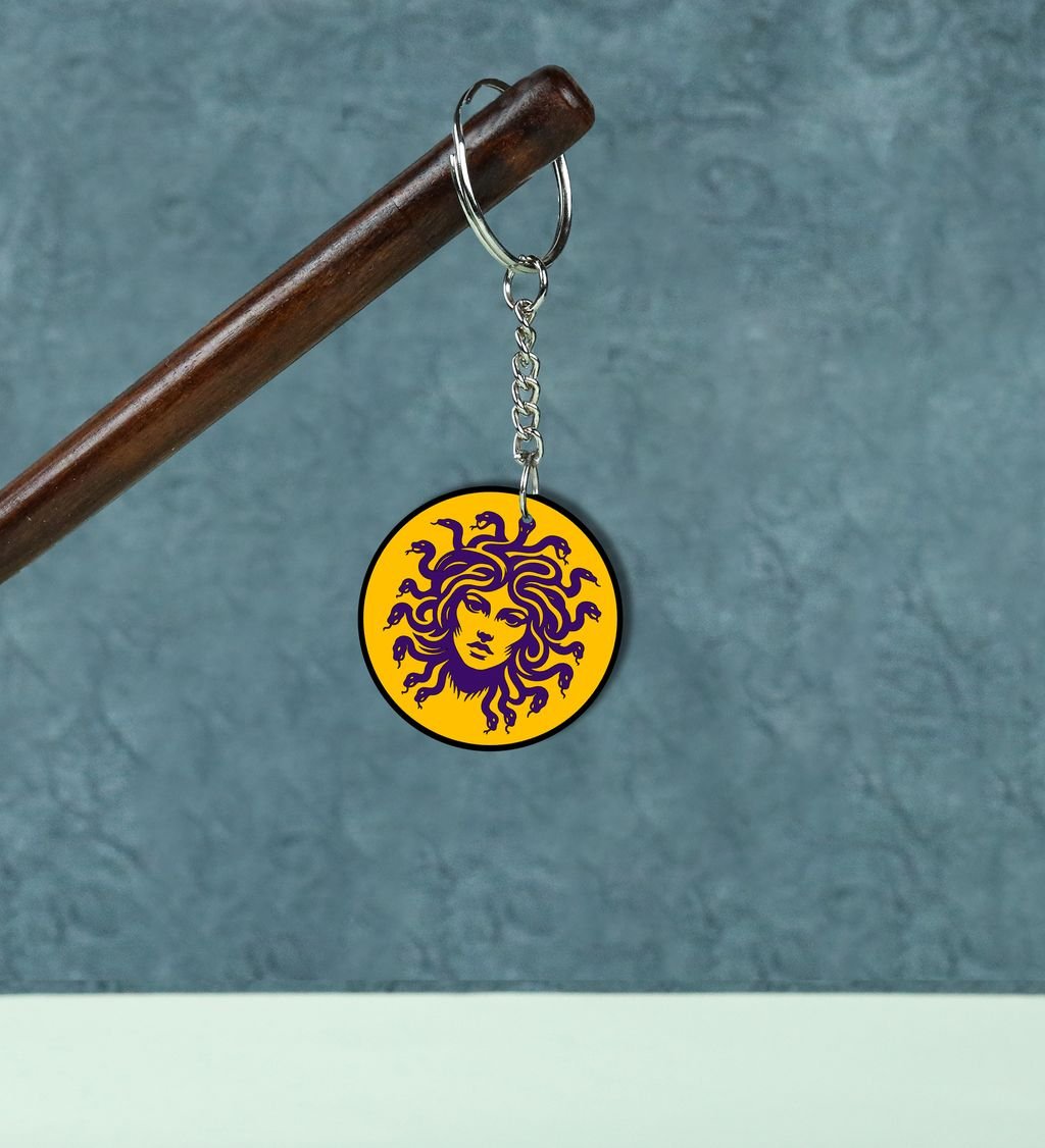Eye-Catching Mythical Serpent Hair Portrait Art Printed Round Keychain Pack of 2