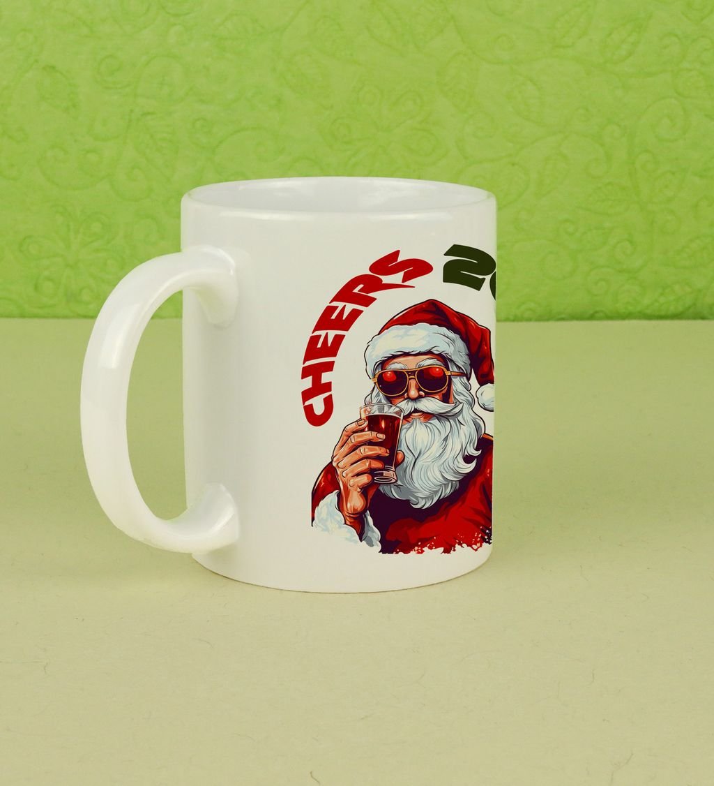 Festive Santa Cheers 2025 Holiday Celebration Printed Coffee Mug 250ml