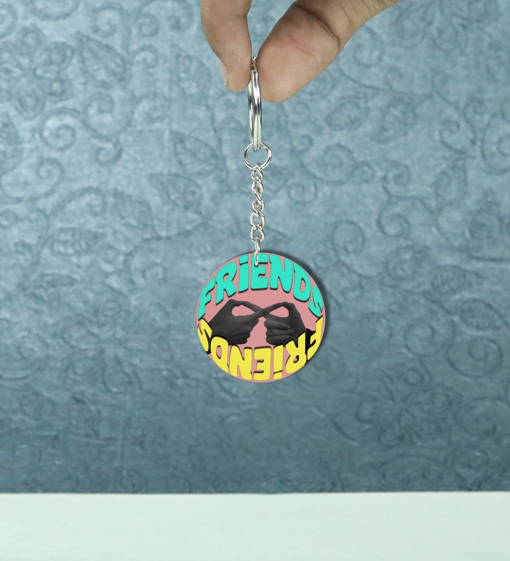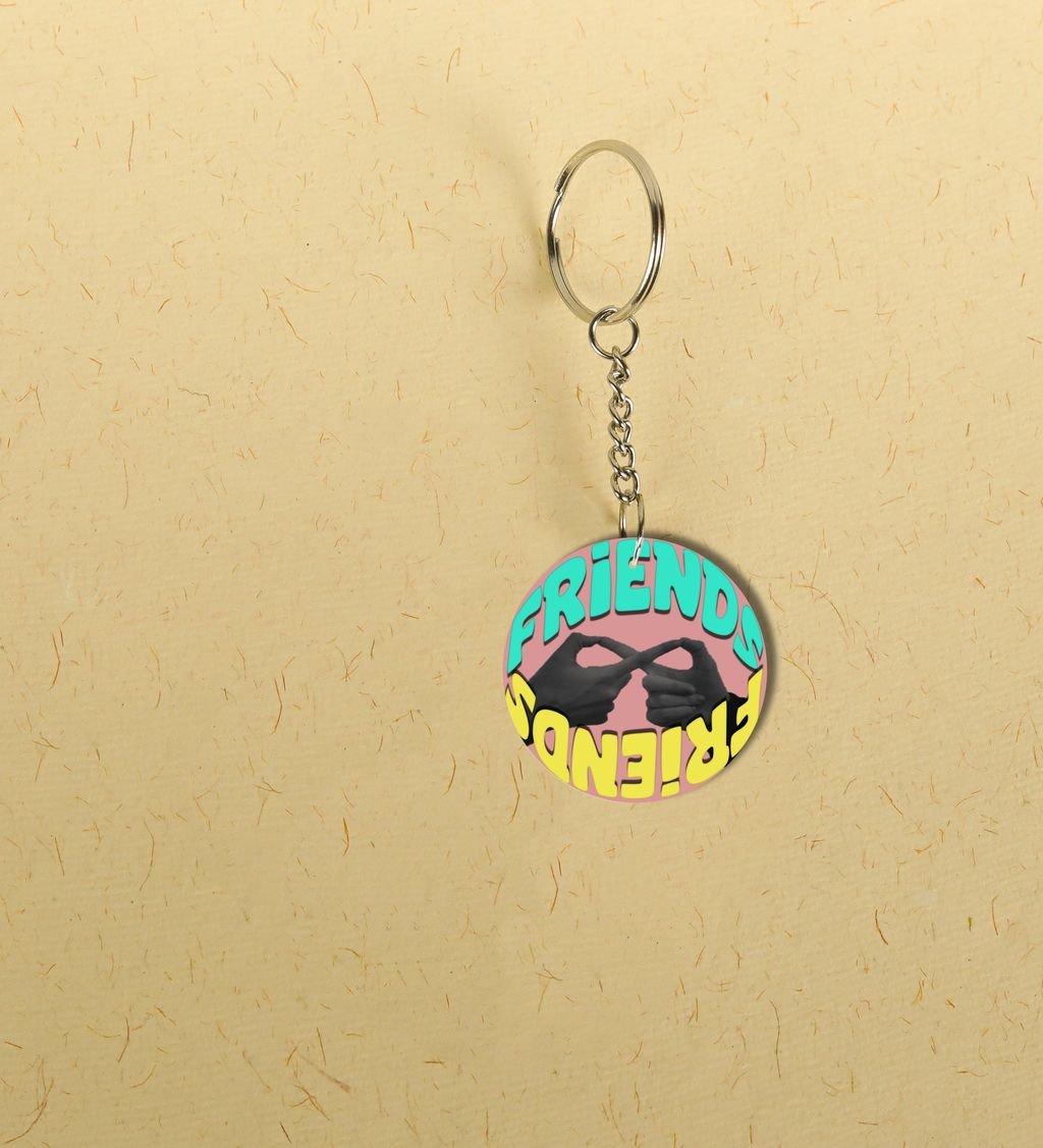 Friendship Vibes in Retro Color Style: Printed Round Keychain Pack of 2