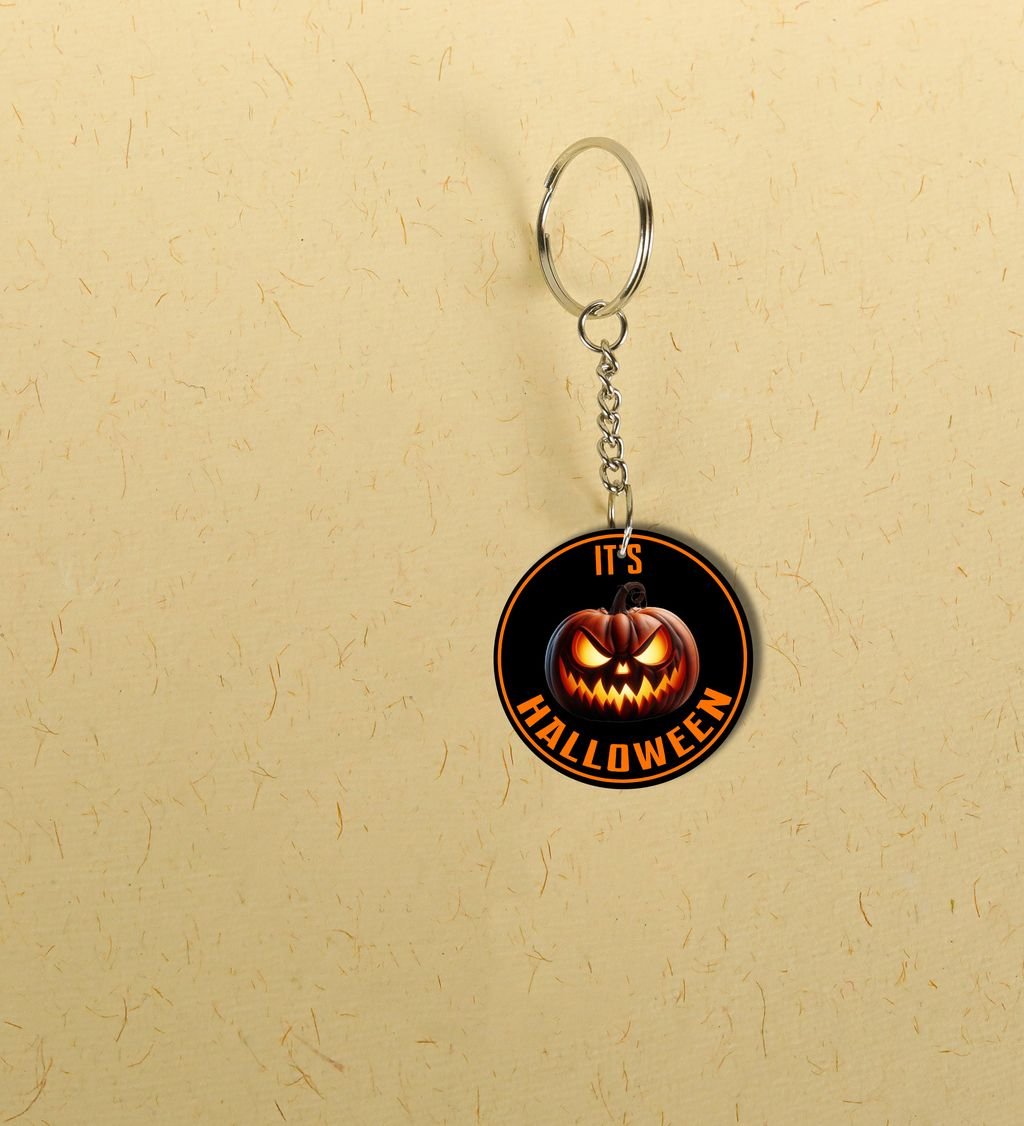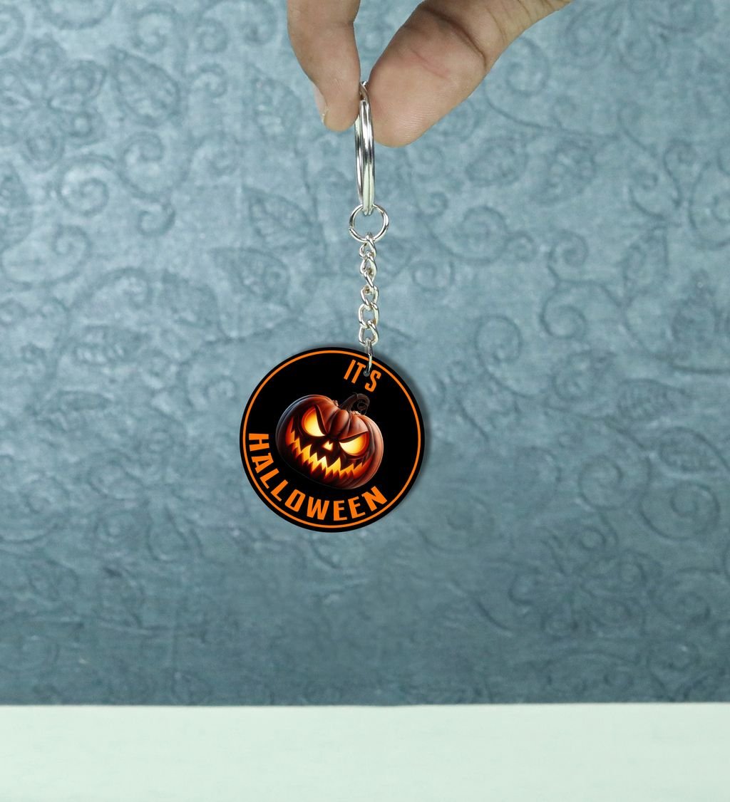 Fright Night Grinning Pumpkin Head Printed Round Keychain Pack of 2