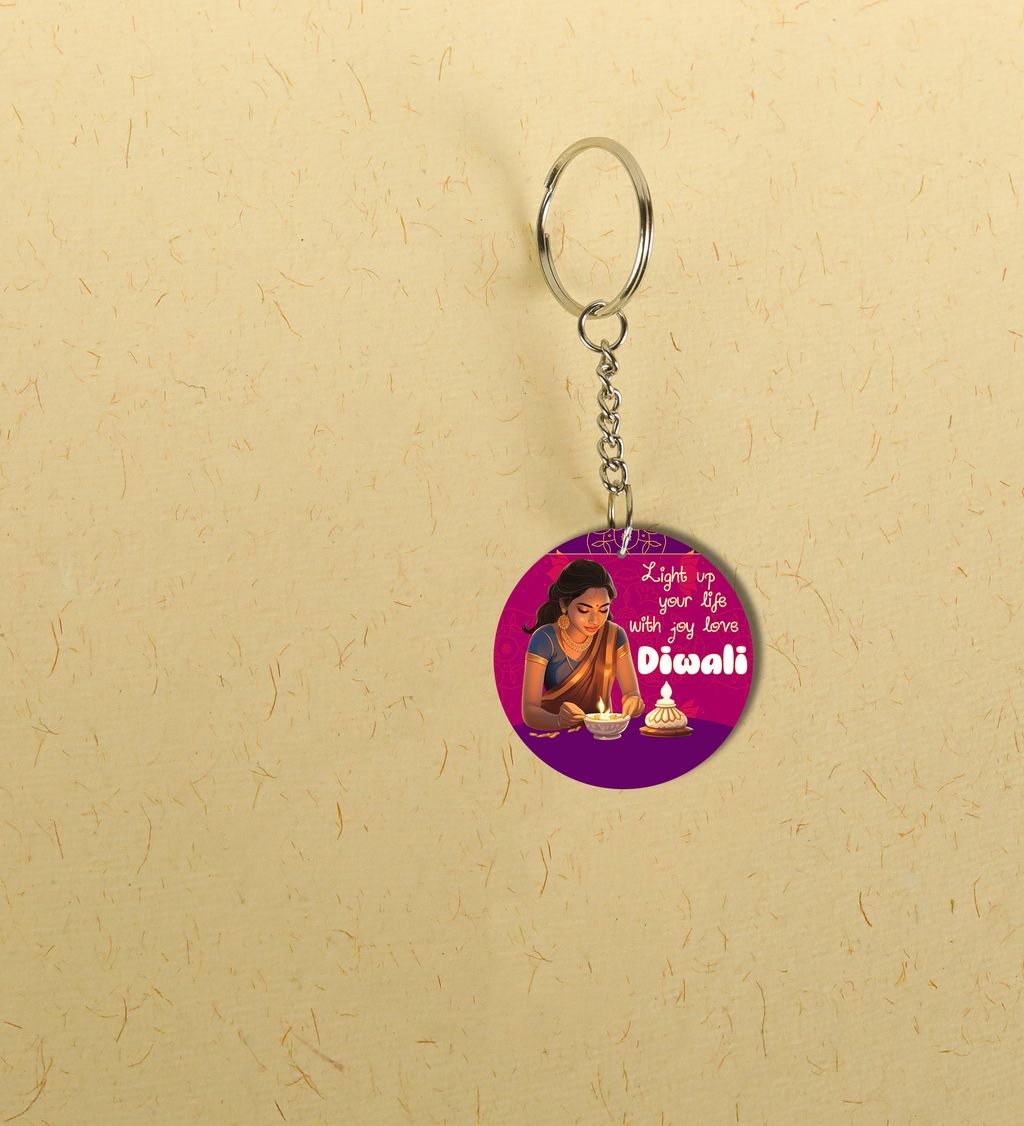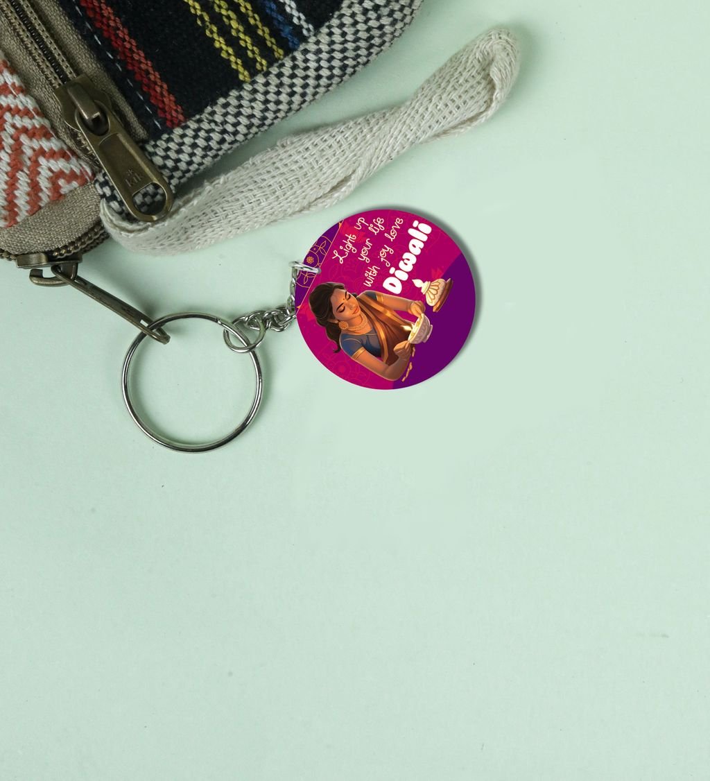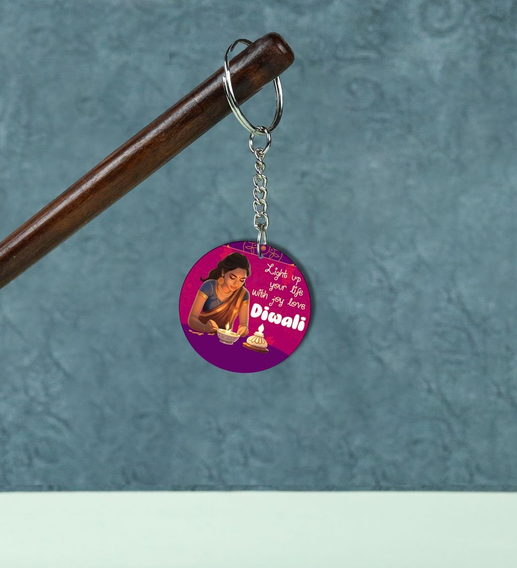 Happiness and Lights Diwali Printed Round Keychain Pack of 2