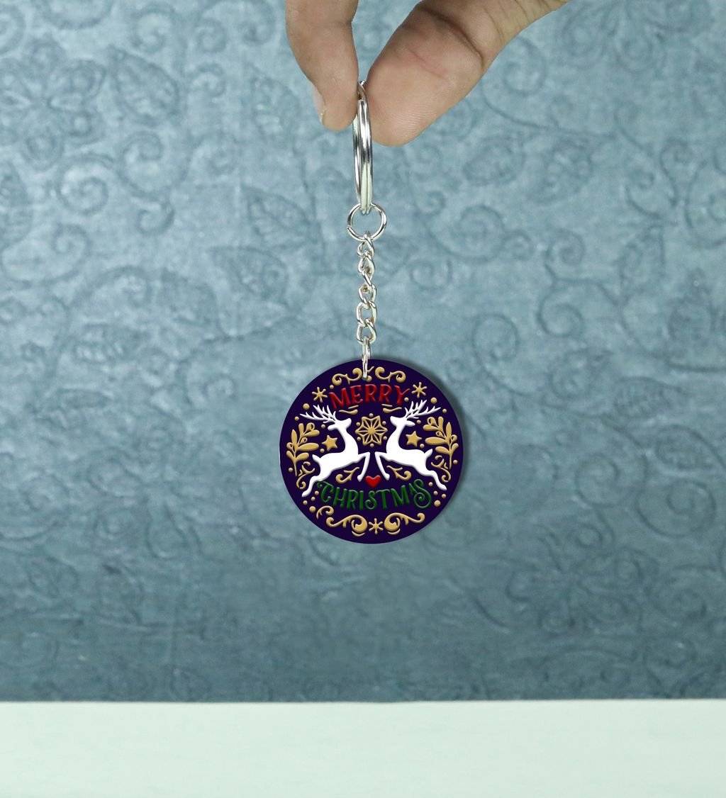 Celebrate the joy of the season with this beautifully designed Christmas Printed Round Keychain. Its festive artwork brings the warmth of holidays wherever you go