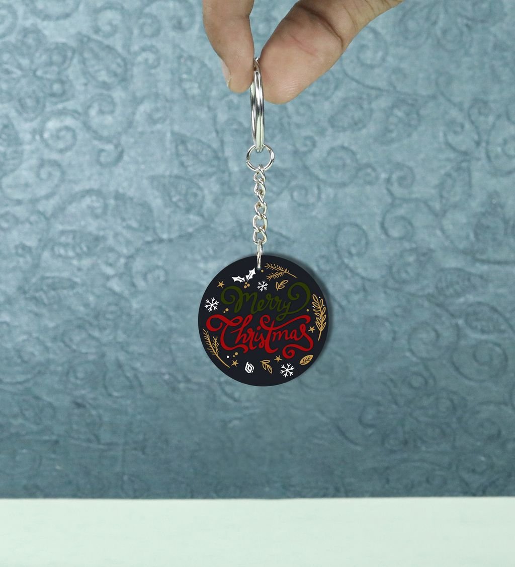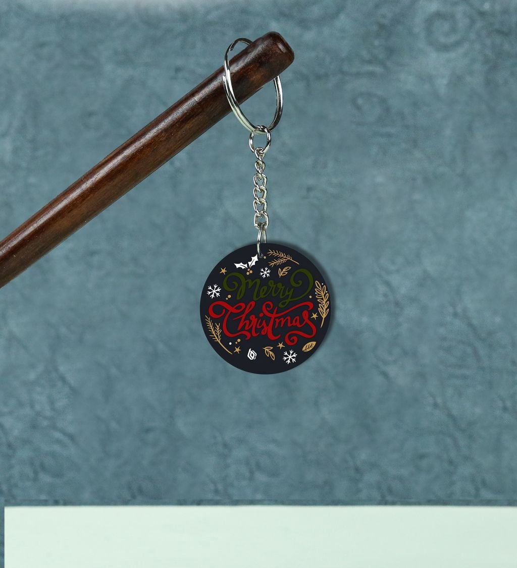 Let Every Moment Shine Bright with Christmas Printed Round Keychain Pack of 2