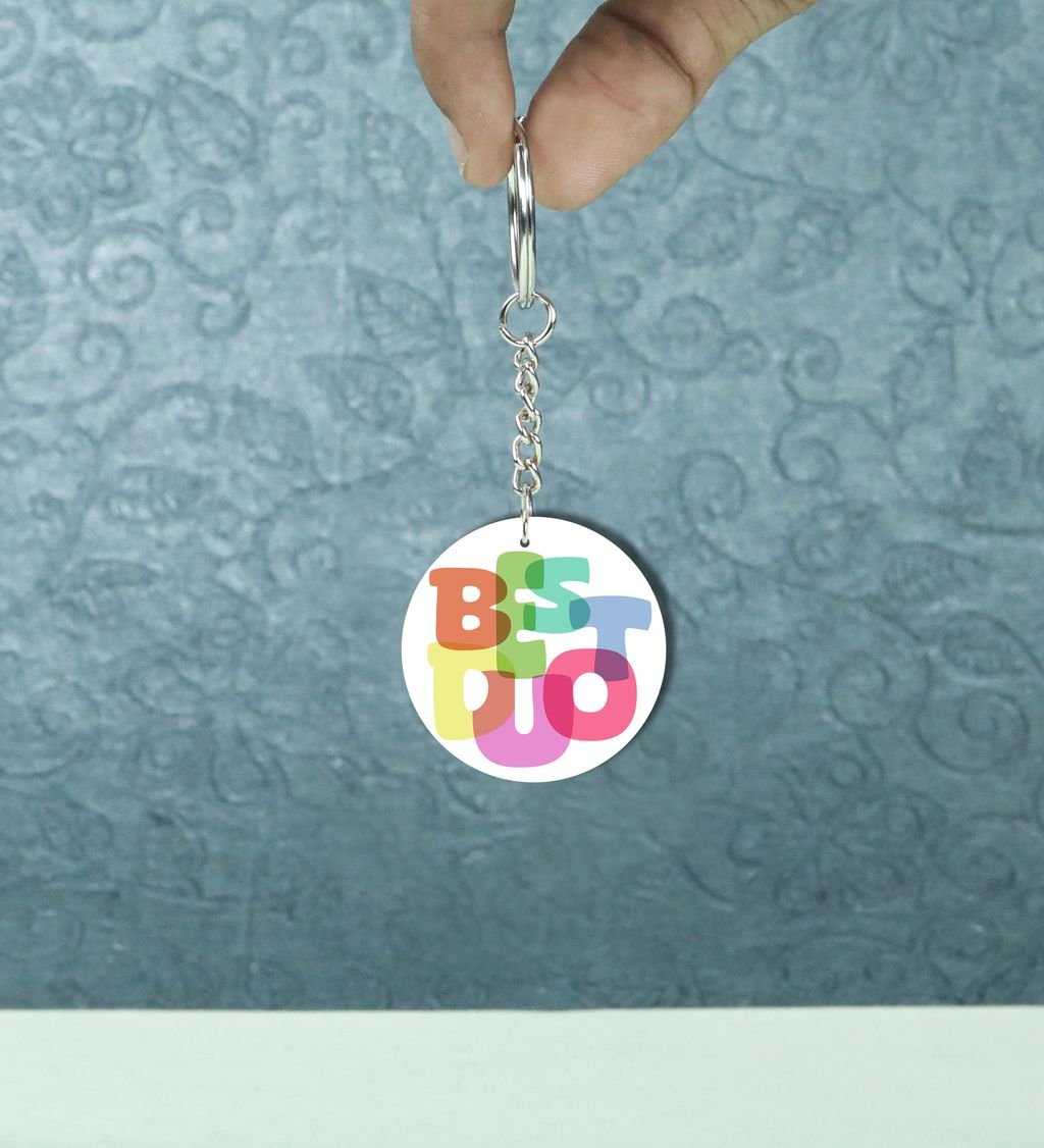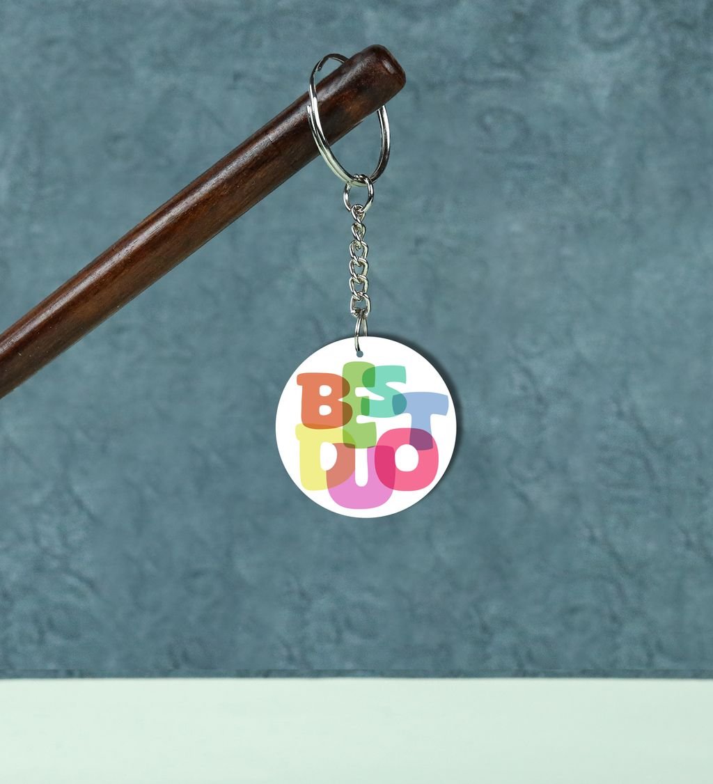 Multicolor Best Duo Graphic Look: Printed Round Keychain Pack of 2