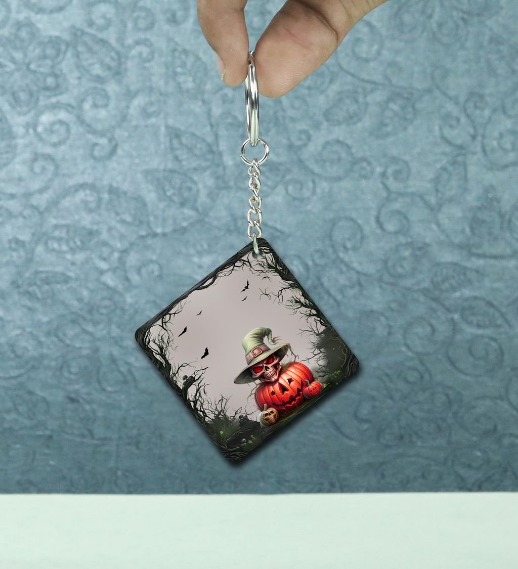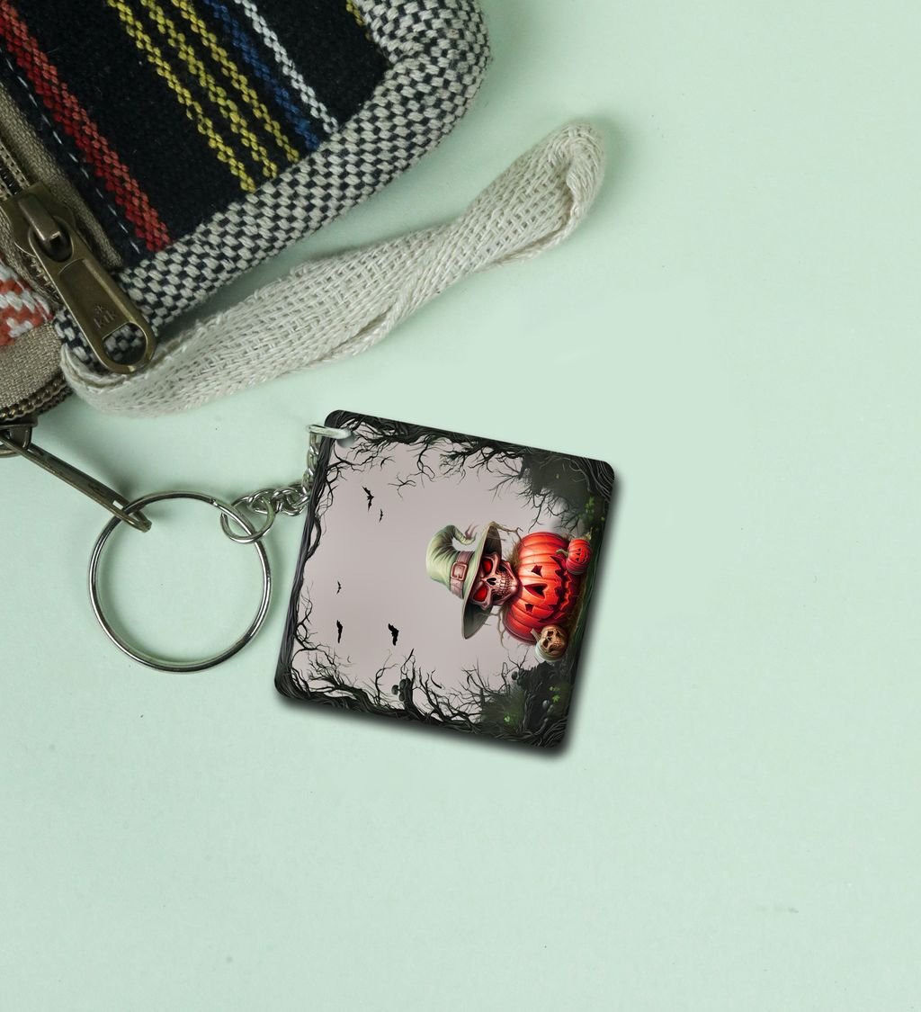 Mystic Halloween Night with Pumpkin Spirit Printed Keychain Pack of 2