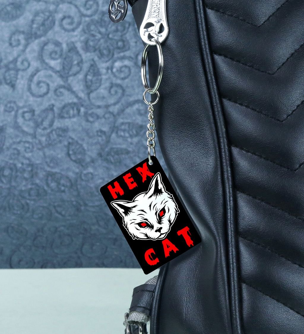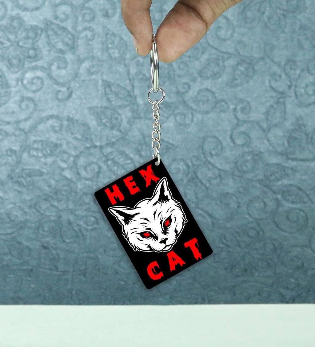 Add a dash of spooky charm to your everyday carry with this Halloween Cat rectangular keychain. Featuring a bewitching black cat design with eerie eyes and festive flair, it