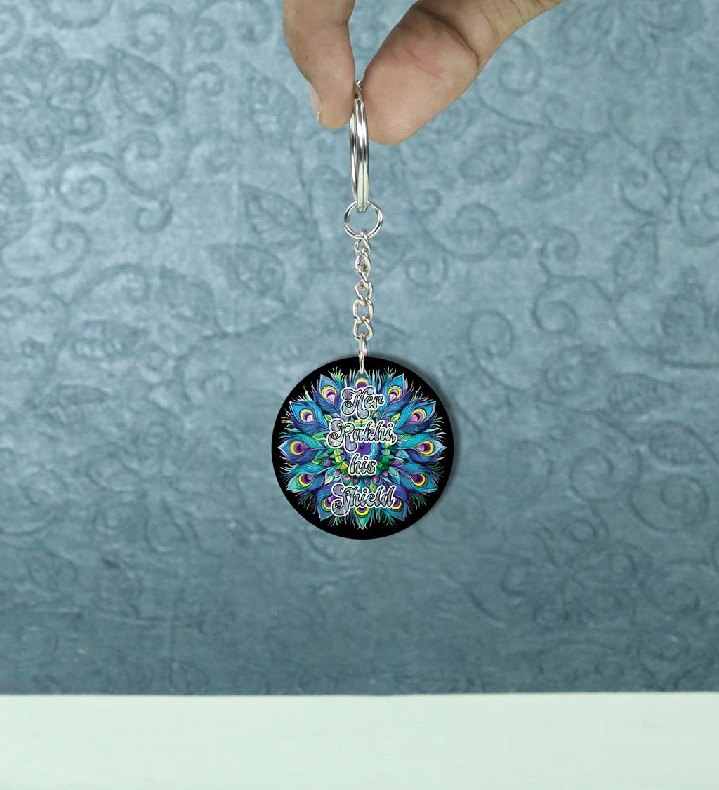 Celebrate the sacred bond of protection and tradition with our Rak?ha?sk?it Round Keychain. Inspired by ancient Indian motifs and symbols of divine guardianship, this keychain blends cultural elegance with daily utility. A perfect token to carry blessings wherever you go, it's more than just a keyholder
